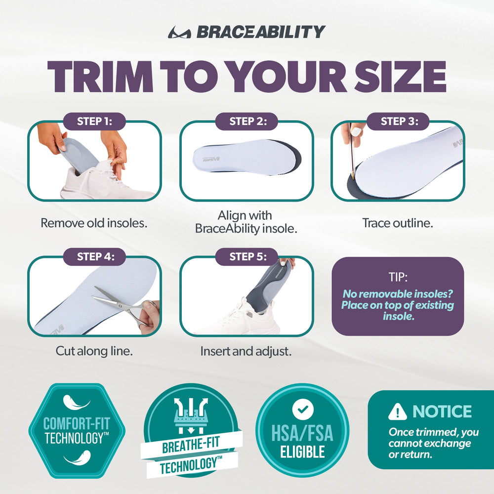 Fit Note: For the most comfortable and secure fit, replace your original insole with BraceAbility’s. Layering both together may make shoes feel too tight or unstable.