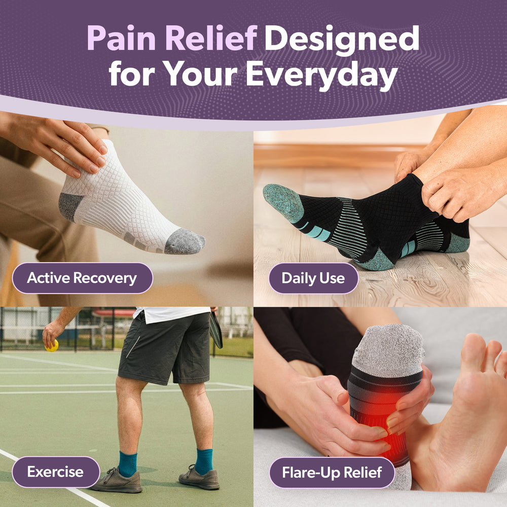 Whether you're on your feet all day or recovering from a flare-up, these socks provide active relief from: